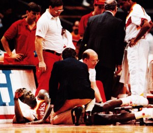 En avril dernier, malgré la victoire des siens face aux Warriors, Kobe Bryant a été victime d’une rupture du tendon d’Achille gauche et a provoqué une absence des parquets de longue durée. Mais rappelez-vous, le 28 janvier 1992, un certain Dominique Wilkins se blesse également au tendon d’Achille et sera indisponible pour le reste de la saison. Sa ligne de stats est remarquable, 28.1 points, 7 rebonds et 3.8 passes de moyenne par match en 42 rencontres, et toute la NBA aura été en état de choc à l’idée de penser que l’un des meilleurs joueurs de la ligue puisse mettre un terme à sa saison aussi rapidement.