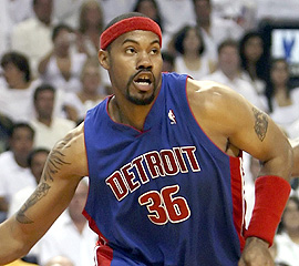 19 février 2004 : Battus sèchement par les Nets en finale de conférence en 2003, les Pistons attaquent la saison 2003-2004 revanchards et avec la casquette de favoris à l’Est. Mais comme McCloskey en 1989, Dumars pense qu’il manque encore un joueur pour que cette équipe puisse prétendre au titre. Le 20 février 2011, son vœu est exaucé et Detroit récupère Rasheed Wallace d’Atlanta en échange de Zeljko Rebraca, Bob Sura, Chucky Atkins, Lindsey Hunter (qui re-signera à Detroit) et un premier tour de draft. Le Sheed à la réputation d’être un joueur à problème, fort caractère et un brin fainéant, bref, l’opposé de la mentalité des Pistons solidaires et travailleurs. Il s’adapte pourtant très vite au style de jeu des Pistons, apporte une nouvelle arme offensive poste bas et surprend défensivement au côté de son homonyme Ben. Wallace accepte de n’être qu’un « second couteau », les Pistons reporteront le titre cette année-là et manqueront de peu le doublé l’année suivante