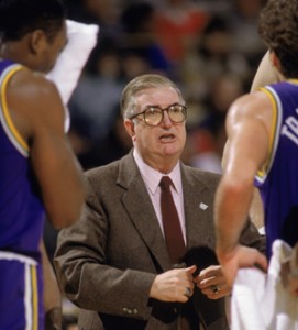 Frank Layden, trib file photoFrank Layden est né le 5 janvier 1932 à Brooklyn. Rapidement il embrasse la carrière d’entraineur. Il rejoint le banc de University Niagara pour coacher les Purples Eagles. Une équipe dont il porta également le maillot en tant que joueur. En 1970 il permet à son équipe d’atteindre le tournoi NCAA pour la première fois de son histoire. Ses bonnes performances ne tardent pas à le propulser en NBA. En 1976, il devient assistant-coach chez les Hawks d’Atlanta. C’est en 1979 qu’il rejoint la franchise qui va le consacrer, les Jazz. A cette époque l’équipe évolue encore à la Nouvelle Orléans. Il en devient le general manager. En 1981 il prend la place de head-coach tout en conservant sa casquette de GM. Il occupera le banc des Jazz pendant sept saisons et demie. Au terme de la saison régulière 83/84 les Jazz signent un bilan de 45 victoires et 37 défaites, améliorant de 15 victoires leur record de la saison précédente. Frank Layden n’est pas étranger à cette performance et il décroche le titre de  » Coach of the year « . C’est également au terme de cette saison qu’il se voit adjuger le  » J Walter Kennedy Citizenship Award «  (ndlr : Le J. Walter Kennedy Citizenship Award est une récompense annuelle de la NBA qui porte le nom du deuxième président de la ligue, Walter Kennedy.