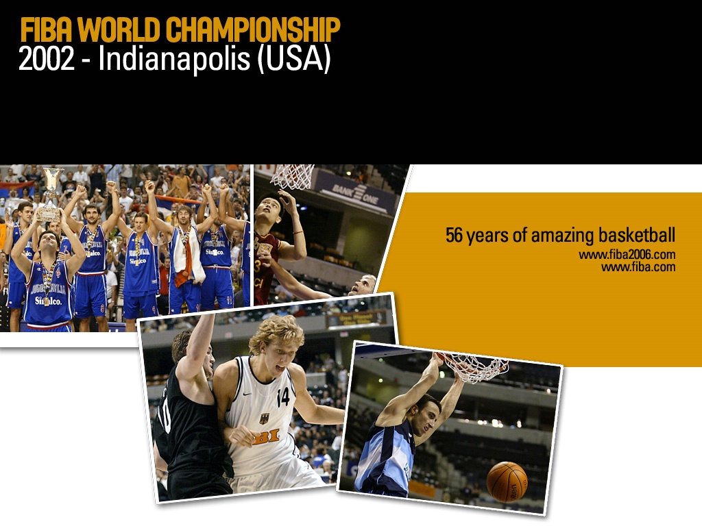 La première compétition de type FIBA disputée sur le sol américain a été disputée en 1996 dans le cadre des JO d’Atlanta. En 2002, Indianapolis accueille une compétition dédiée au basket international, ce qui prouve l’intérêt nouveau des Etats–Unis pour ces dernières. Des moyens immenses ont été mis en place pour son déroulement. Outre la Conseco Fieldhouse (aujourd’hui Bankers Life Fieldhouse), salle des Indiana Pacers d’une capacité de 18.000 places, le RCA Dome, stade des Indiana Colts (équipe de football américain de NFL), a été réaménagé pour accueillir des matchs de basketball avec une capacité de 58.000 spectateurs !