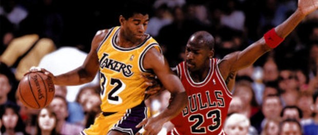 Earl “Magic” Johnson sort lui de deux années en NCAA conclues par un magnifique titre contre l’Indiana de Bird. Il est plus jeune (20 ans) et débarque dans une équipe déjà au top. Entouré d’une constellation de star (Kareem Abdul Jabbar, Jamaal Wilkes…) , le meneur angelino impressionne (18 pts; 7,7 rbds et 7,4 pds). Si Boston et Bird voient leur parcours s’arrêter en finale de conférence, Magic Johnson va mener les Lakers au titre. Fait unique, le meneur sort une série d’anthologie ponctuée par un dernier match joué au poste de pivot, afin de combler la blessure de Kareem Abdul Jabbar. Résultat : 42 points, 15 rebonds, 7 passes et un titre de MVP des finales.