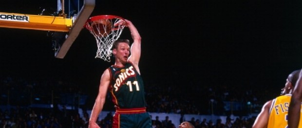 Ultra complet et bourré de technique, Detlef Schrempf qui fête ses 62 ans aujourd’hui, était incontournable au milieu des 90′s. Tout d’abord chez les Pacers avant de prendre définitivement son envol à Seattle où ils participent à la grande période des Sonics. A côté du tandem explosif Payton-Kemp, l’Allemand la joue plus sobre mais tout aussi efficace. Il tentera de gagner sa bague à Portland, en vain.