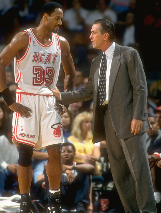 Après ces petites frictions, place au coaching pour Riley qui rebâtit son équipe avec le duo de feu Alonzo Mourning et Tim Hardaway en 1995-96, saison durant laquelle Miami se fera sweepé par les monstres de Chicago au premier tour des playoffs. En 1997, Miami réalise une belle perf en alignant 61 victoires pour 21 défaites, finissant à la première place de la Division Atlantique et battant un record en saison régulière. Pat Riley est nommé pour la troisième fois coach de l’année.