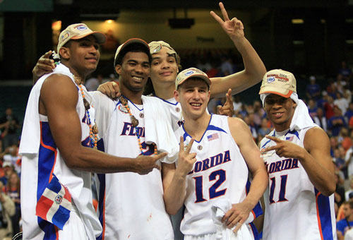 Lors de ce double succès, et s’entendant à merveille sur et en dehors du terrain, le cinq majeur des Gators était composé des joueurs aux noms bien connus actuellement en Europe ou en NBA :