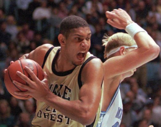 A une période où de nombreux jeunes talents passaient directement du lycée à la NCAA, comme notamment Kobe Bryant en 1996, Duncan a refusé les offres de plusieurs franchises pour tenir sa promesse. Il jouera pour l’université de Wake Forest, en Caroline du Nord, de 1993 à 1997. C’est une jeune université ne figurant jamais parmi les favorites pour la March Madness. En 1992-1993, l’année précédant l’arrivée du jeune prodige des îles vierges, Wake Forest a effectué la meilleure performance de son histoire, atteignant le Sweet Sixteen (l’équivalent d’un huitième de finales).