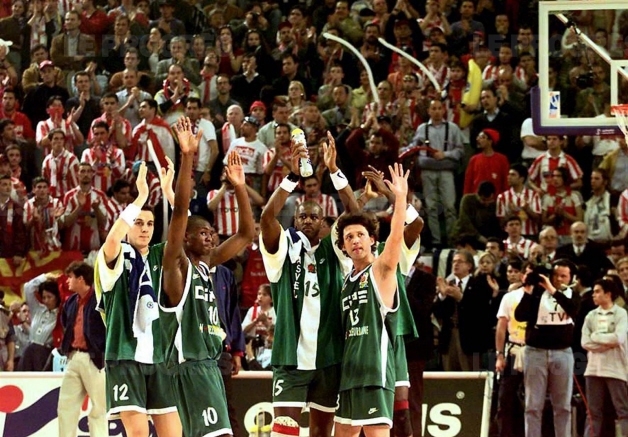 Remi-Rippert (n-12) – alain digbeu (n-10) ronnie smith (n-15) georgi adams (13) au final four de rome Euroligue 1997 (c) philippe juste Remi-Rippert - Alain Digbeu - Ronnie Smith - Georgi Adams au Final four de l' Euroligue 1997 à Rome (c) Philippe Juste