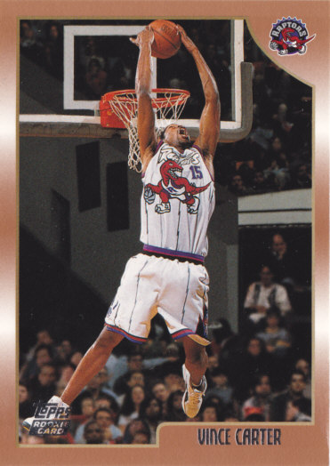 La carte présentée est une des plus belles qui ait été produite lors de son année rookie. L’action est splendide et le timing de la photo rend ce dunk magnifique. Parmi les nombreuses images de VC, celle-ci est injustement une des plus méconnue. Cette carte représente globalement l’année rookie du « Half-Man Half-Amazing » et sa manie à squatter nos highlights de l’époque. C’est justement ce qui est appréciable. Enfin la texture de la carte la valorise encore plus.