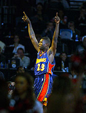 Jason Richardson célèbre sa victoire au Slam Dunk Contest 2003 (c) nba com Jason Richardson célèbre sa victoire au Slam Dunk Contest 2003 (c) nba.com