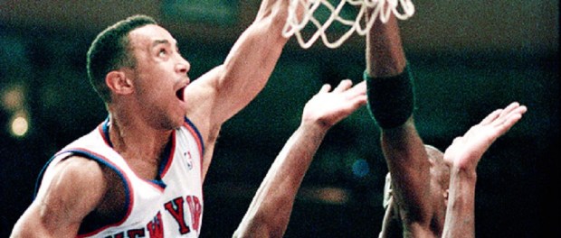 Décollage imminent de Robert Pack sur Thurl Bailey, avec tout de même une faute du meneur des Nuggets non sifflée. Pour beaucoup d’entre nous, c’est certainement le dunk de l’année, le fameux ligne de fond de John Starks sur les Bulls en playoffs! Pour NBA Action, c’est Mario Elie sous le maillot de Portland qui va coller une belle pastèque à Antoine Carr!