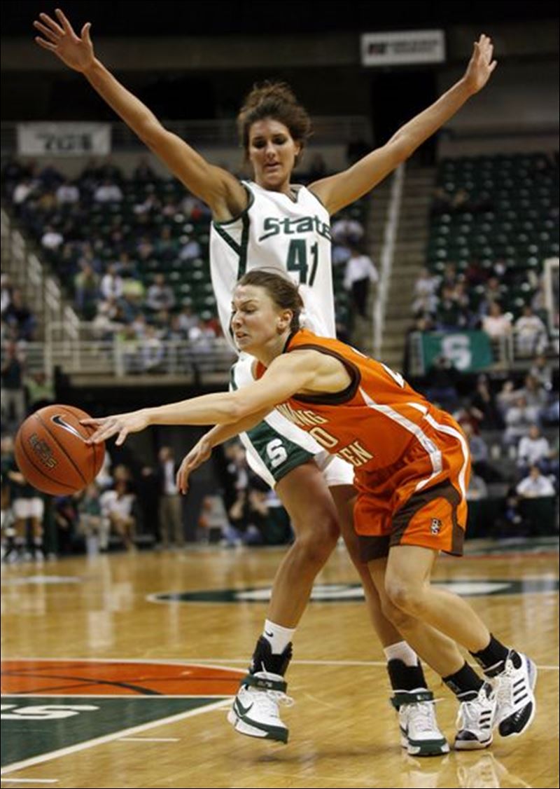 Allyssa DeHaan en défense pour Michigan State Spartans (c) The Blade – Andy Morrisson Allyssa DeHaan en défense pour Michigan State Spartans (c) The Blade - Andy Morrisson