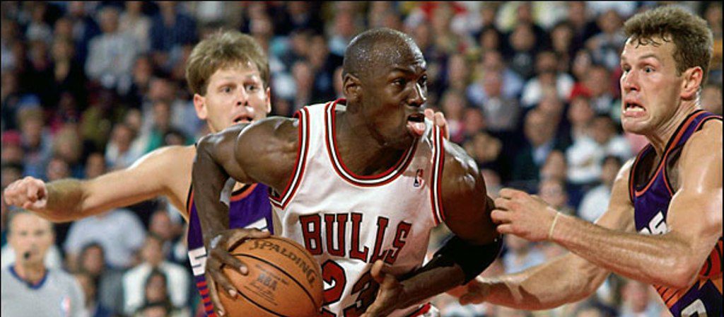 Jordan face à Majerle (c) nba com Jordan face à Majerle lors du Game 5 de la Finale NBA 1993 (c) Getty