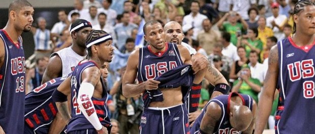 A l’aube du début du tournoi olympique des questions demeurent quant à l’équipe américaine. En effet la liste des joueurs ayant décliné l’invitation est longue et les raisons invoquées diverses (fatigue, blessure, mariage, sécurité) : Shaquille et Jermaine O’Neal, Ben Wallace, Kobe Byant, Jason Kidd, Kevin Garnett, Ray Allen, Elton Brand, Richard Hamilton ou encore Tracy McGrady. L’effectif se construit ainsi : deux superstars de la ligue, Iverson et Duncan, des joueurs au statut confirmé (Marbury, Marion, Jefferson, Odom) entourés par des jeunes loups prometteurs, dont les trois rookies stars de la saison écoulée (James, Anthony, Wade). L’équipe ne compte qu’un seul véritable meneur de jeu (Marbury) et empile les ailiers très athlétiques, forts en pénétration, mais pas vraiment réputés pour leur qualité de shooteurs extérieurs. Or dans le jeu FIBA, la présence de joueurs capables d’étirer la défense par cette menace extérieur est un élément qui paraît incontournable.