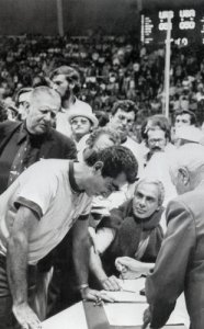 La première mi-temps est une purge. Mais une purge maîtrisée par les Soviétiques qui acceptent le jeu proposé par Iba. Après tout, ce sont eux qui ont été les chantres de cette tactique du jeu posé au service d’intérieurs dominants. Les défenses prennent le pas, les intérieurs se neutralisent, mais les Rouges disposent d’un atout que la logique aurait plutôt aligné dans le roster des Blancs. Un swingman capable de faire la différence à la périphérie et de prendre le jeu à son compte si nécessaire. Devant ses téléviseurs l’Amérique horrifiée découvre que le meilleur sur le terrain est dans l’équipe d’en face et porte le nom de Sergueï Belov. L’écart monte à 10 points, 19/9, avant de se réduire à 3 au coup de sifflet qui marque la fin de la mi-temps. 24/21 pour les Russes. Les Américains peuvent considérer que c’est un moindre mal.
