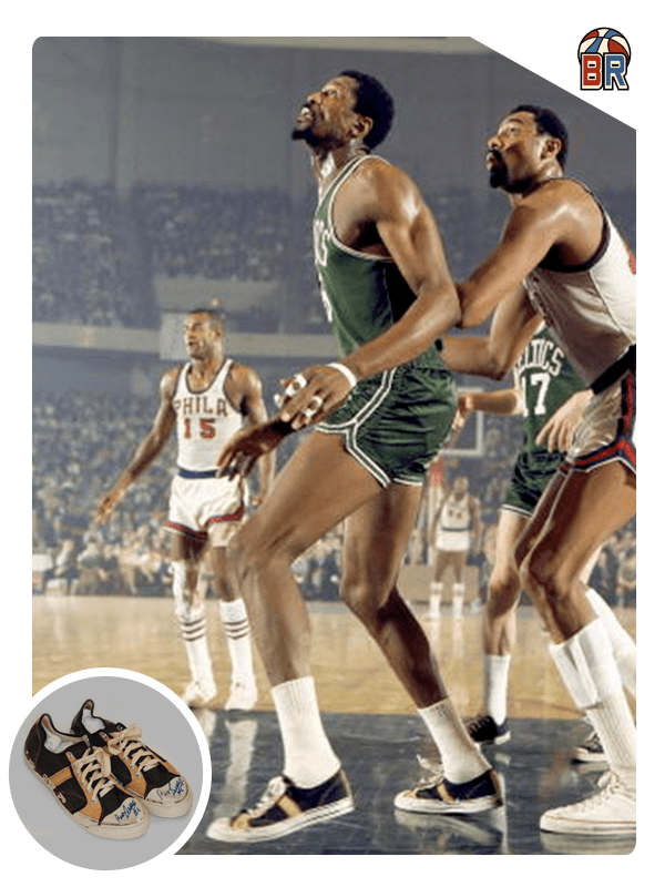 Comme bon nombre de joueurs des années 50′ et 60′, le légendaire pivot des Celtics a joué l’essentielle de sa carrière avec des Converse Chuck Taylor All Stars aux pieds. En 1966, il se distingue des autres, lors de sa dernière saison, avec une paire de chaussures différentes. La marque Bristol (alors d’avantage connue pour des chaussures citadines ) décide, en effet, d’en faire le porte étendard de sa nouvelle gamme de sport. Une expérience qui tourne court, la carrière de Bill Russell se terminant alors que la marque ne persistera pas sur ce créneau.