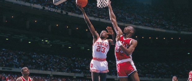 Des gars sérieux, Dean Garrett, le pivot qui rejoindra la NBA neuf ans plus tard aux côtés de Kevin Garnett. Mais aussi le meneur Keith Smart et son camarade à l’arrière, Steve Alford, l’un des bonhommes les plus sous-estimés de la décennie « eighties ». Vous allez vite comprendre pourquoi Alford était un joueur spécial, mais qui n’a malheureusement pas percé en NBA.