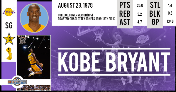 Sélectionné par les Hornets de Charlotte avant d’être transféré au Lakers alors qu’il est lycéen, le jeune Kobe fait des débuts timides lors de son année de rookie. La trêve du All-Star game reste le moment qui lui permet de briller en remportant le concours de dunk et en explosant les compteurs pour la sélection de l’Ouest lors du match des débutants.