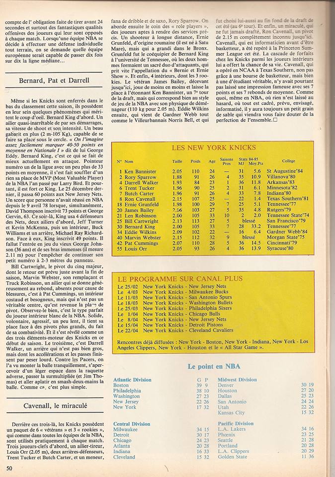 Désireux de frapper un grand coup sur la scène médiatique Française, Canal + acquiert auprès de la Madison Square Garden Television, les droits de diffusion de l’équipe des New-York Knicks, pour la saison 1984-1985. Les Knicks sortent d’une bonne saison, se faisant éliminer en demi-finale de la conférence Est, par les futurs vainqueurs de la compétition, les Celtics de Boston. Quant au M.S.G, elle n’est d’autre que la salle omnisports la plus populaire de la planète.