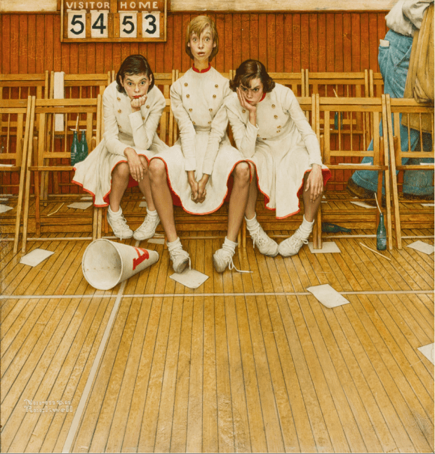 « Losing the games », couverture du 16 février 1952 du Saturday Evening Post. Le tableau est parfois appelé « Cheerleaders ».