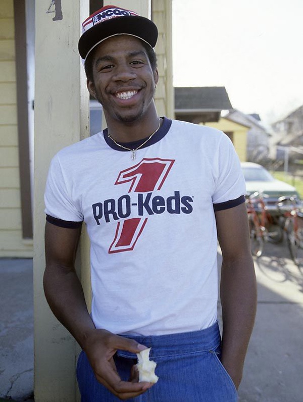 Magic Johnson n’a finalement jamais porté de Pro-Keds en NBA, signant dès le début de sa carrière avec Converse, le concurrent historique. Mais il nous reste cette photo d’un Magic juvénile croquant le fruit défendu et portant un tee-shirt Pro-Keds ainsi que tous ces noms et histoires reliant la marque à l’histoire culturelle des États-Unis et à une certaine idée de l’Amérique.