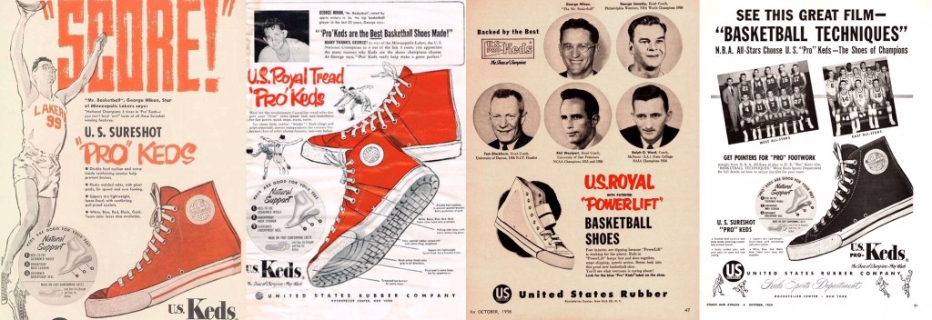 La marque Keds ayant acquis une image sportswear et décontractée, la société souhaite une spécialisation plus poussée vers le sport professionnel avec la création, en parallèle de son activité existante, de Pro-Keds en 1949. Bien que des stars masculines tels Buster Keaton, Humphrey Bogart ou Paul Newman aient porté des Keds, cette diversification avec Pro-Keds permet aussi de revenir commercialement vers les hommes et de s’ouvrir vers les professionnels dont ceux du basketball qui se structure de plus en plus dans la période d’après guerre. Créée en 1946 sous le nom de BAA (Basketball Association of America), la ligue professionnelle devient NBA en 1949 avec la fusion avec la NBL (National Basketball League). Les Pro-Keds arrivent à point nommé et viennent se poser en concurrentes des Converse «All Star» (devenues «Chuck Taylor All Star» après 1921) qui dominent outrageusement le marché sur les terrains depuis 1917, Marquis Mills Converse ayant créé la marque portant son nom en 1908. Pro-Keds propose des modèles plus techniques avec notamment un meilleur amorti que sur les chaussures utilisées jusqu’alors. La marque va frapper un grand coup en recrutant, dès 1949, George Mikan des Minneapolis Lakers. Première grande star de l’histoire de la ligue, «Mr Basketball» contribue au développement sportif de la marque en faisait la promotion de la «U.S. Sureshot» puis de la «U.S. Royal Tread». Les Lakers sont champions BAA en 1949 et champions NBA en 1950, 1952, 1953 et 1954. Lors du All Star Game 1954 se déroulant au Madison Square Garden, les deux équipes portent des Pro-Keds. Bob Cousy est élu Most Valuable Player de cette rencontre.