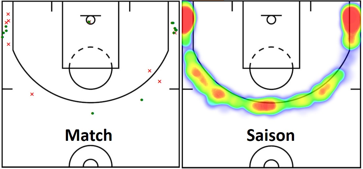 Vous pouvez voir ci-dessous, la shot-track du match en comparaison de sa shot-track à 3 points de la saison :