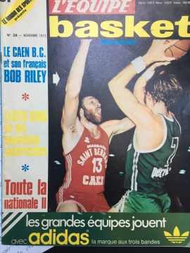 Couverture de l’Equipe Basket Magazine de novembre 1973. Quand deux Bob se retrouvent : Riley face à Purkhiser. @Equipe Basket Magazine.