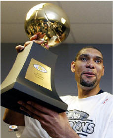 Tim Duncan tout sourire avec le trophée de MVP des finals en 2003 (c) hhweb com Tim Duncan tout sourire avec le trophée de MVP des finals en 2003 (c) hhweb.com