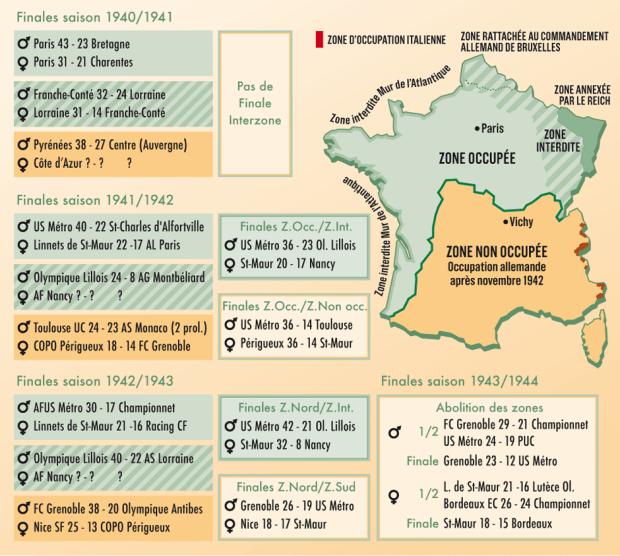 RÉCAPITULATIF DES RÉSULTATS DES CHAMPIONNATS DE FRANCE ENTRE 1940 ET 1944