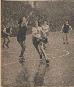 Janine Chartier du COPO Perigueux à l’attaque lors de la finale féminine inter-zones 1942.