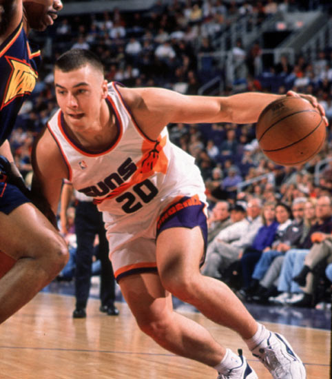 Inscrit à la draft de 1997, Marko Milič est sélectionné par les Sixers en 34ème position, mais est aussitôt envoyé chez les Phoenix Suns. Il arrive dans l’Arizona au sein d’une franchise bien habituée au dunkeurs de légende (Larry Nance, Tom Chambers…). L’effectif y est tout bonnement incroyable: Trois meneurs fantastiques: Jason Kidd, Steve Nash et Kevin Johnson, (Penny Hardaway s’y ajoutera même par la suite !) ; des pistoleros de renom : Dennis Scott, George McCloud et le regretté Cliff Robinson ; sous le cercle des intérieurs de légende : Danny Manning, Antonio Mc Dyess. Et même deux icônes du dunk : Cédric Ceballos (vainqueur du dunk contest 92) et Rex Chapman (3ème de ce concours en 1991).