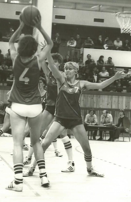 BJ : On remportait le titre de Tchécoslovaquie tous les ans, nos rivaux étaient le Slavia Prague, où jouait mon amie Hana, mais aussi le club de Bratislava… C’était difficile de faire sa place. J’avais un problème de taille car je mesurais 1m83 mais j’avais été formée comme pivot. Aujourd’hui, les filles de cette taille jouent arrières ! J’étais très bonne à ce poste jusqu’à mes dix-neuf ans, je mettais beaucoup de points. Ensuite, j’ai donc joué 3 ou « faux 4 », ce n’était pas facile de s’écarter du panier et de ne plus jouer dos au panier. À vingt-et-un/vingt-deux ans, j’étais sélectionnée en équipe nationale B seniors, j’ai participé à des tournois internationaux avec cette équipe-là, et j’ai été présélectionnée en équipe nationale A pour les Jeux Olympiques de Los Angeles où finalement aucune sélection de l’Est ne s’est rendue (ndlr : en réponse au boycott des États-Unis lors des Jeux de Moscou de 1980, aucune sélection de l’Est ne se présenta à Los Angeles en 1984). De toute façon, c’est pendant cette présélection que je suis restée en France. Je n’ai donc jamais joué de championnats d’Europe ou du Monde avec l’équipe nationale A.