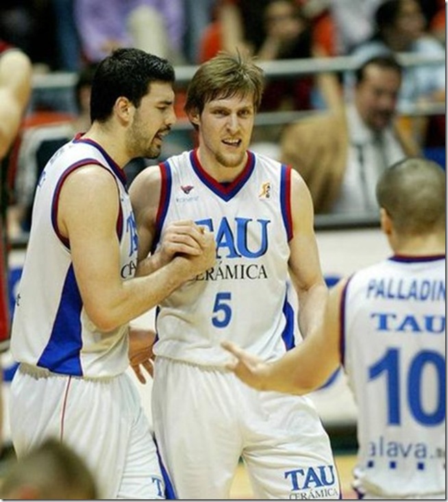 Citons également l’Italo-Argentin Marcelo Nicola, dont la carrière sera italienne et qui aura effectué deux passages au sein de Vitoria sous deux appellations différentes (Taugres et Tau Ceramica) et Walter Hermann qui se rappellera au bon souvenir de l’Équipe de France en 2006 lors du Mondial de basket au Japon. Des Argentins, coéquipiers de Luis Scola en sélection et qui sera complété par deux hommes taillés dans le roc et le vice. D’une part, le meneur Pablo Prigioni (qui deviendra brièvement coach de l’équipe en 2017), un joueur tonique et dur au mal qui terminera sa carrière à Vitoria en 2017. Et Andres Nocioni, un ailier-fort et une des plus grandes teignes du basket européen de par sa personnalité et son jeu fait de provocations, de coups en douce mais toujours au service de son équipe. Prigioni et Nocioni auront également une petite carrière en NBA (Knicks, Clippers pour Prigioni et Bulls, Sixers pour Nocioni notamment) mais reviendront au bercail du nord de l’Espagne.