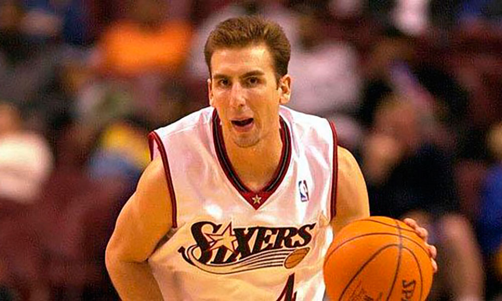 La soirée du 28 juin 2000 sera longue pour le sud-américain, lors de la draft, il entend David Stern égrainer 58 noms, sans jamais prononcer le sien. Non sélectionné, il réussit néanmoins à gagner sa place dans le roster de Philadelphie, définitivement sa ville d’adoption. Le 31 octobre 2000, Larry Brown le fait entrer en jeu pour le Sixers au Madison Square garden, il devient au quart d’heure près, le premier argentin à jouer en NBA. (Quelques minutes plus tard sur le parquet des Vancouver Grizzlies, Ruben Wolkowisky avec les Sonics en sera le second!). Avec seulement 4,5 pts de moyenne lors derniere année en NCAA, Sanchez avait déjà montré ses limites au scoring. Il était donc complètement illusoir d’imaginer qu’un meneur de son style puisse briller dans cette ligue, et encore moins dans une franchise dont le contenu du playbook de l’époque tient sur un post-it et se résume à un nom: “Allen Iverson”.