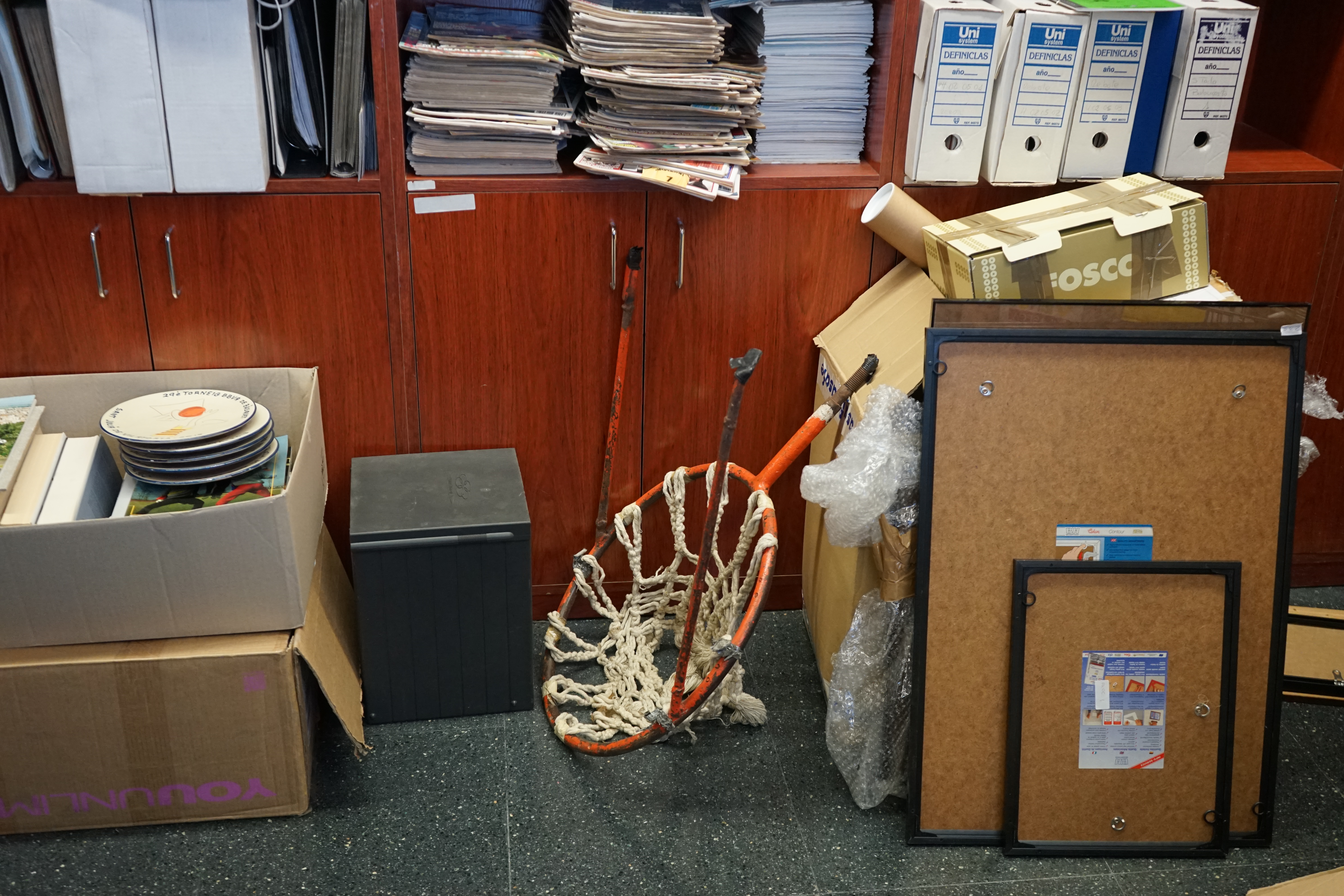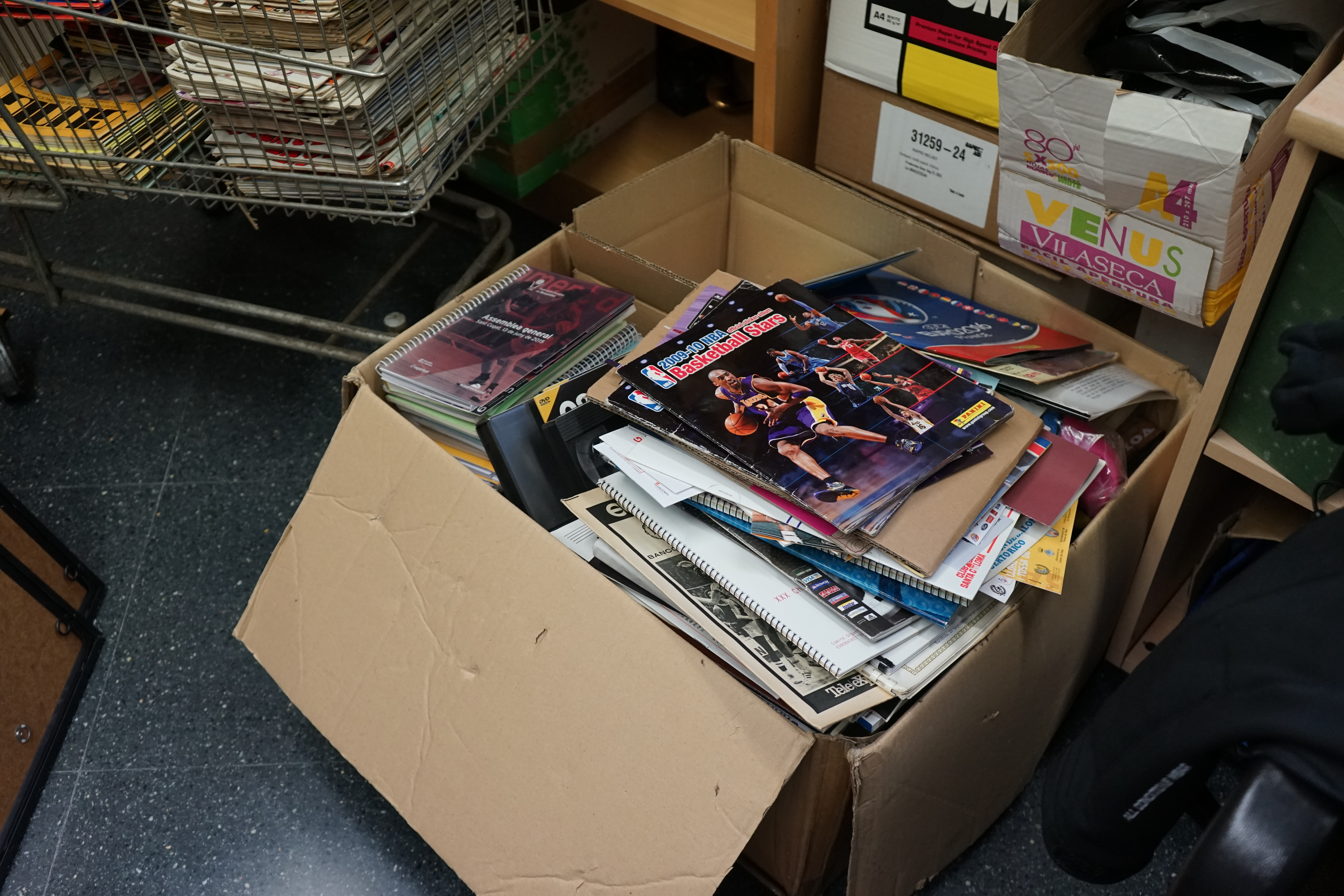 Pour clore la visite, mon guide du jour m’amène dans son bureau pour me montrer une somme de magazines, documents, objets qu’il n’a pas encore archivé… Ainsi que la collection phénoménale de photos du basket catalan, depuis les origines.