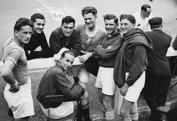 Henri Lesmayoux (2° à partir de la gauche), Raymond Poutriquet (au centre) et Rémy Meyvial -n°6) sous le maillot de la SIG en 1937. Quelques semaines plus tard, Lesmayoux, retourné à Championnet, débutera en équipe de France.