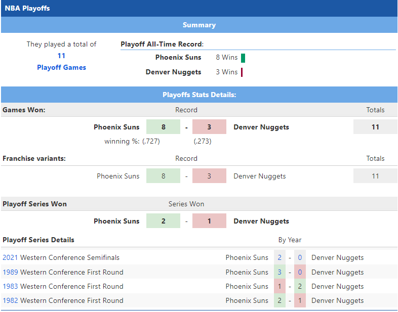 L’histoire des séries : Phoenix Suns vs Denver Nuggets
