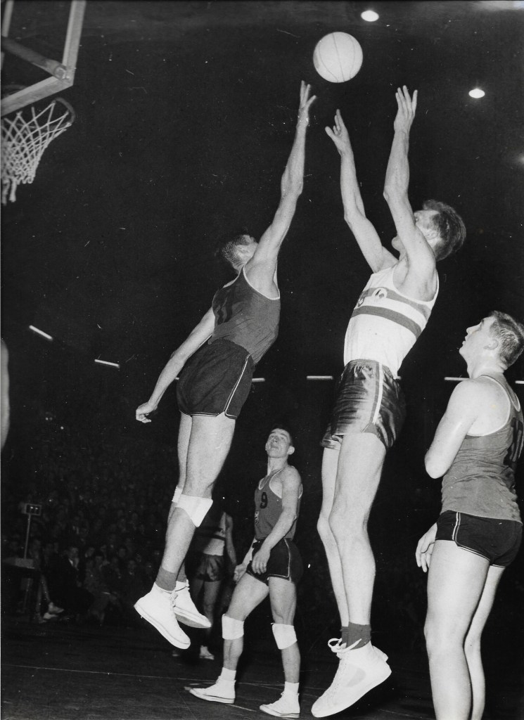 A cette époque, la FFBB était en recherche constante d’amélioration, une recherche tout azimut, parfois même à l’excès : Busnel a fait venir des sauteurs en hauteur, par exemple. Je pense à Alain Hahn, qui était un athlète spécialiste de saut en hauteur et qu’on a fait venir en équipe de France (pour un match amical contre l’Argentine en Mai 1962) pour la seule raison qu’il avait des qualités athlétiques. Mais on voit rapidement les manques d’un joueur qui a des qualités athlétiques mais qui n’a pas de culture basket… L’exemple de Jean-Claude, qui, lui pour le coup, n’avait vraiment pas de qualités athlétiques : on a essayé d’élever son seuil de réalisation mais en réalité, par rapport au jeu de l’équipe de France, on n’était pas en déficit de taille par rapport aux autres équipes, même sans lui. A l’Euro 1959 à Istanbul, j’étais le plus petit avec mon 1m80. En taille moyenne, on devait tourner aux alentours de 1m92 quand même, on était dans les standards européens. Au niveau mondial non plus, Il n’y avait pas ce type de très grands joueurs par la taille. En 1963 à Rio, cela n’existait pas, Même Krouminch n’était pas là.