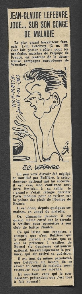 Au crédit de Lefebvre, on peut tout de même mettre en perspective ces propos avec ceux de Marcel Hansenne, le grand reporter basket de L’Equipe et ancien recordman du monde du 1000m qui, dans son très recommandable ouvrage de 1963 « Le Basket » rappelait : « En Europe, nous ne savons pas encore très bien utiliser la taille de nos géants. Jean-Claude Lefebvre, par exemple, était bien plus efficace quand il portait le maillot de Gonzaga que lorsqu’il est revêtu de la tunique tricolore »…