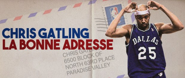 Pas de chance pour Gatling, à cette époque il règne un bordel sans nom dans l’effectif des Warriors. Pour le remercier, le front office l’expédie à Miami en compagnie de Tim Hardaway. Il s’agit du premier trade de sa carrière, mais pas du dernier : Dallas, New Jersey, Milwaukee, Orlando, Denver, Cleveland et retour à la case Miami. C’est en Floride qu’il mettra un terme à sa carrière NBA en étant coupé par le Heat en Juin 2002. Au cours de toutes ces escapades, on retiendra que Chris Gatling parviendra tout de même à s’incruster au All-Star Game 1997 en profitant des blessures de Barkley et Drexler. Il faut sue dire que cette saison là il apporte 19 points et 8 rebonds aux MAVS. Pour le remercier, quelques jours après le All-Star Break, les dirigeants texans l’envoient chez les Nets. Décidément, les lendemains de fête sont difficiles pour Gatling.