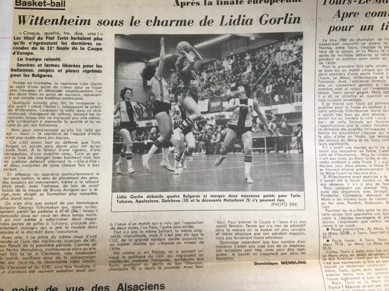 20 mars 1980 – Wittenheim, près de Mulhouse, 13 500 habitants, est la capitale d’un jour du basket européen féminin : l’USW organise, ni plus ni moins la finale de la Coupe d’Europe entre les Italiennes de Fiat Turin et les Bulgares de Minior Pernik. Un geste déplacé émaille le match…