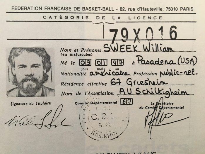La licence « étranger » de Bill Sweek à l’AU Schiltigheim pour la saison 1979/80.