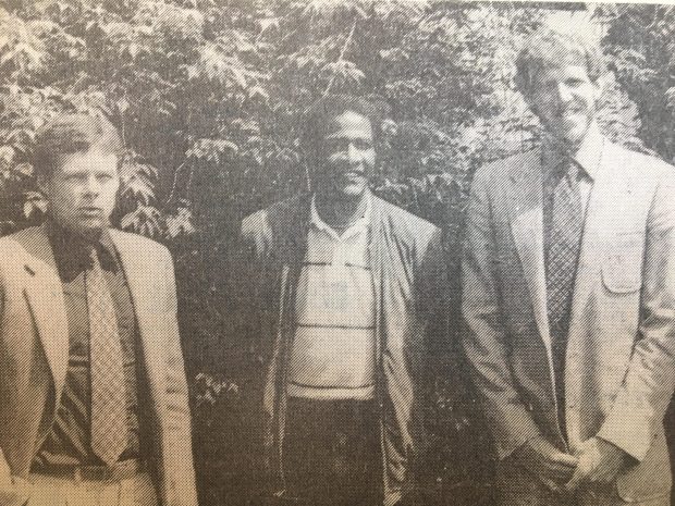 Mars 1980 – A Landersheim, Bill Sweek en compagnie de Bill Walton (à droite) et Barry White. @DNA