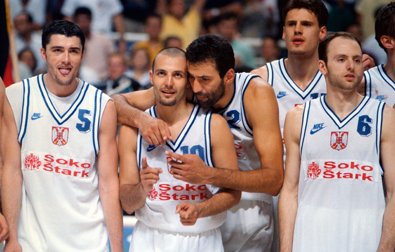 Le club récupère en effet un jeune pivot de 18 ans, avec une envergure de 2m16 sous la toise, un certain Vlade Divac, à partir de la saison 1986-1987 ainsi qu’un ailier gaucher de 20 ans promis, lui aussi, à de grandes œuvres, Žarko Paspalj. Notons enfin, deux ans plus tard, l’arrivée d’un arrière aussi teigneux que talentueux en la personne de Predrag Danilović, 18 ans également, lors de la saison 1988-1989. Divac deviendra plus tard un pivot NBA, et All-Star avec les Kings, les Lakers et les Hornets de Charlotte. Danilović fera les beaux jours de la Virtus Bologne et évoluera deux saisons au sein du Heat de Miami. Quant à Paspalj, il deviendra une référence du basket grec au sein de l’Olympiacos, du « Pana » et du Panionis. En attendant ces lendemains qui chantent, le Partizan commence à mettre en place une ossature solide autour d’une génération dorée qui va faire parler d’elle. Dans cette équipe, Djordjević, Obradović, Divac et Paspalj sous la houlette du bouillant Duško Vujošević, passé par le CSP en 2016-2017, remporte lors de la 1986-1987 le championnat yougoslave en battant successivement le KK Zadar, le KK Bosna pour accéder en finale avant de défaire le voisin de Belgrade, l’Etoile Rouge, deux manches à zéro. Une consécration pour Sasha Djordjević qui remporte son premier trophée à l’âge de 20 ans. Pour le jeune meneur, l’année 1987 est également à marquer d’une pierre blanche puisqu’avec l’équipe nationale yougoslave, Djordjević glane un bronze lors de l’Eurobasket en Grèce derrière le pays hôte du génial Nikos Galis et l’URSS de Šarūnas Marčiulionis. Une équipe yougoslave, là encore, pleine de promesses avec la présence de Žarko Paspalj, Stojko Vranković, Vlade Divac, Dino Rađa, Danko Cvjetićanin, Toni Kukoč et des frères Petrović, Aleksandar et Drazen, le « Mozart » du basket européen, décédé en 1993, sous la houlette de Krešimir Ćosić, ancien pivot atypique et multititré du basket yougoslave (décédé en 1995). Le début d’une nouvelle aventure pour le meneur qui touche dès lors au sommet du basket dans son pays, avant de conquérir l’Europe.