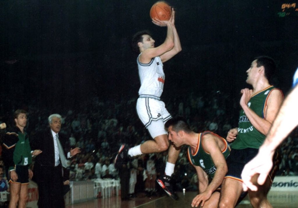 Si Milan était favori face aux Yougoslaves, Badalone et ses trois petites défaites seulement en saison régulière sont archi-favoris sous la houlette du coach espagnol Lolo Sainz, avec les frères Jofresa (Rafa et Tomàs) mais aussi Villacampa, un de meilleurs joueurs espagnols de l’histoire, et l’ailier US Harold Pressley, quatre saisons aux Kings et drafté lors de la promotion 1986 en compagnie notamment de Len Bias, John Salley et Arvydas Sabonis. A cela s’ajoutent l’ailier-fort US Corny Thompson et le pivot espagnol Juan Antonio Morales. Cette équipe complète et joueuse est ainsi programmée pour remporter le trophée. Pourtant, dans une finale heurtée, le Partizan tient tête et mène lors de la première mi-temps 40-34. La seconde période est donc davantage basée sur la défense et l’engagement physique tant et si bien que les deux équipes sont à égalité 68-68 à 45 secondes du terme de la rencontre. Predrag Danilović (25 points, meilleur marqueur de la rencontre) se faisant même exclure pour cinq fautes, l’affaire semble mal engagée pour les hommes d’Obradović qui profitent néanmoins de l’incapacité de Villacampa et Morales de conclure leurs lancers-francs. Tomàs Jofresa réussit à marquer à dix secondes de la fin du match (70-68). Ces dix secondes vont changer le cours de l’histoire du basket et permettre à Aleksandar Djordjević de marquer un panier à trois points invraisemblable. Tel un ailier de foot, sur le côté droit, Djordjević remonte à toute allure le terrain face à Jofresa qui tente de le bloquer. Toujours sur le couloir droit et après un mini-temps d’arrêt, le numéro 4 du Partizan lance à quatre secondes de la fin du temps réglementaire son tir. A la troisième seconde, bingo !! Le tir miraculeux est dedans (71-70), la Abdi İpekçi Arena d’Istanbul exulte et le Partizan finit sa saison sur un triplé Championnat-Coupe de Yougoslavie-Euroligue improbable. Un geste du meneur (23 points) parti pour tenter l’impossible et qui a fini par écrire sa propre légende. Un tir devenu dès lors culte et qui participe à la légende européenne de Djordjević.
