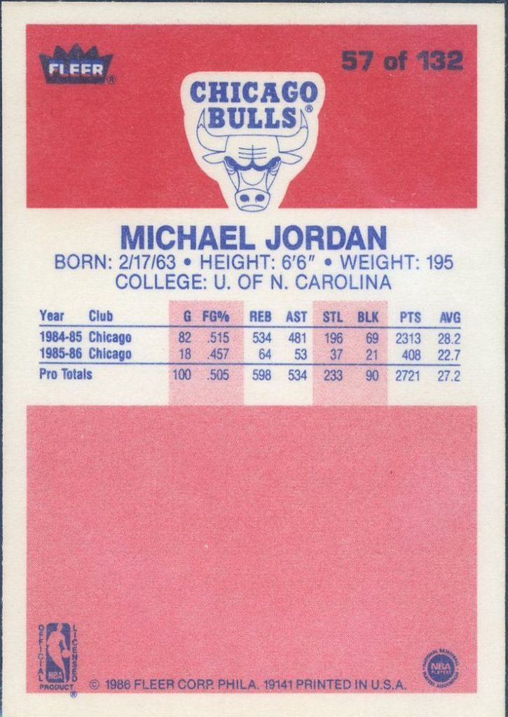 La carte du mois : Fleer 1986 n°57 de Michael Jordan, Rookie Card ou pas ?