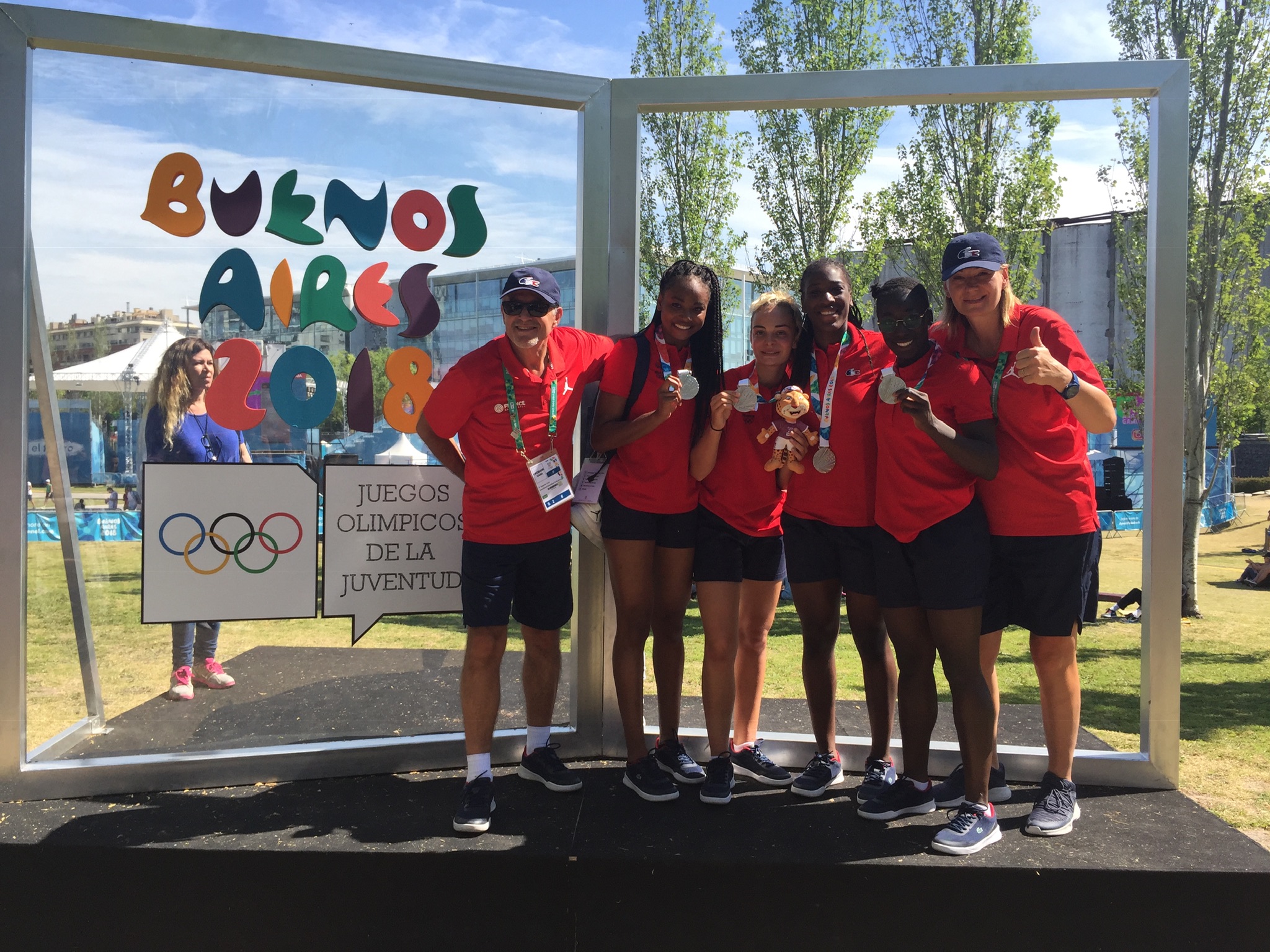 AK : C’était nouveau pour moi, dynamique et cela restait du basket. Cela m’a plu. C’est très formateur également le 3×3 et j’ai découvert le management d’une équipe. Ce qui est particulier, c’est l’approche. En 3×3, les joueuses sont très autonomes même si on les prépare évidemment que ce soit offensivement ou défensivement. Individuellement, cela apporte de la confiance également. A Minsk, on a gagné les jeux européens. Les JO de la jeunesse en Argentine, c’était formidable comme compétition également. (nos photos. Source : Collection personnelle d’Anna Kotocova). On vécu une aventure formidable en terminant deuxième. J’étais seule avec les filles au village et on a partagé beaucoup de choses ensemble, les entrainements, les matchs, etc… Au départ, on s’entrainait sur des terrains en béton où le sable arrivait. Il faisait 9 degrés, franchement c’était difficile. Mais les filles se sont accrochées et à la fin, on fini deuxième sous 30 degrés. Le site était magnifique en plus. A la fin, on mettait une heure pour sortir du terrain car tout le monde voulait prendre des photos avec les filles. En finale, contre les USA, on n’a pas pu rivaliser. J’ai vécu de beaux moments. Les filles ont travaillé en confiance et humainement c’était quelque chose. Les filles ne voulaient pas rentrer. Elles pleuraient d’ailleurs en partant… C’était très émouvant. Moi, j’ai toujours voulu vivre ces moments en tant qu’entraineur et c’est arrivé là bas. Évidemment, toutes mes expériences sont importantes et belles mais celle-là reste particulière. Vraiment. Pour la formation des jeunes, je reste persuadé que c’est important de passer par le 3×3, au moins à un moment. C’est un complément au 5×5 quand arrive la fin de saison.