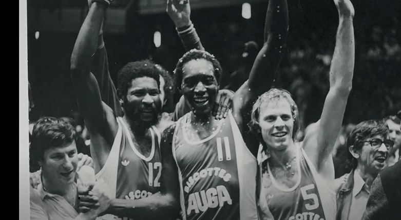 JC : Ma première sélection en équipe d’Europe j’ai eu la chance de rencontrer mon frère. Cela me fend le cœur d’en parler parce qu’il est mort l’année dernière. C’est Sergei Belov. On était toujours ensemble. J’ai appris beaucoup à ses côtés : l’entrainement, la stratégie, les techniques d’entrainement. Lui, le Russe, il m’a appris sur ce que sont les rapports humains et la valeur du sport. Pour moi, l’équipe d’Europe c’est Sergei dont j’étais la doublure. A mon poste, il y avait Damir Solman aussi, le Yougoslave. Vous vous doutez bien qu’avec des joueurs comme cela j’ai pas beaucoup joué. On a fait Europe / Amérique à Rio mais sinon je crois que je n’ai pas joué. J’ai voyagé par contre en Israël, en Tchécoslovaquie et pour la notoriété c’était intéressant. On a battu les Américains quatre fois de suite. Cette équipe, c’était pas des faire- valoir. J’étais très heureux de participer à cette aventure.
