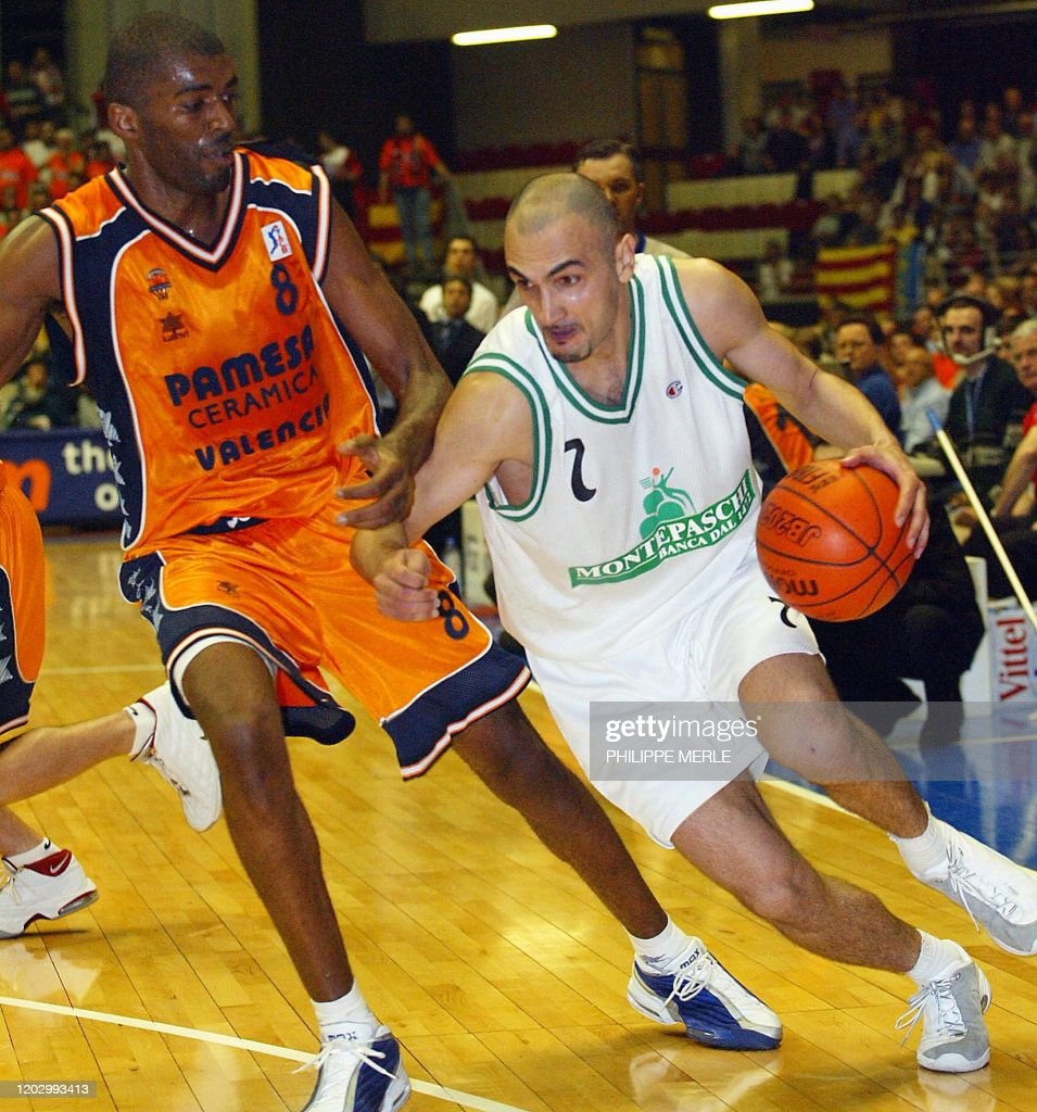 Avec déjà un bel effectif au sein du Montespaschi composé des pivots italiens Giacomo Galanda et Roberto Chiacig, Champions d’Europe à Paris avec la sélection italienne en 1999. De l’actuel assistant des Brooklyn Nets, l’arrière américain David Vanterpool, du pivot australien à la carrière extensible, David Andersen, d’un autre arrière US, Bootsy Thornton. Plus, un ailier grec avec Michalīs Kakiouzīs, un arrière serbo-grec, Dušan Vukčević, d’un ailier-fort lituanien, Champion d’Europe avec son pays lors de l’Euro 2003, Mindaugas Žukauskas. Enfin, des meneurs Marco Sambugaro (Italie) et Macédonien Vrbica Stefanov. Et pour la petite histoire, un petit jeune de 17 ans et futur international, débutant sa carrière, Luigi Datome, passé par la NBA (Pistons, Celtics), Fenerbahçe et actuellement à l’Olimpia Milano. Un effectif taillé pour l’Euroleague et drivé de main de maître par Recalcati qui met à l’œuvre toute sa science du coaching. Un investissement rondement mené également et qui permet par ricochet au généreux sponsor de maximiser sa marque basket en trois ans avec ce titre de Champion d’Italie. Mais pas que sur le sol italien. En effet, Siena continue sur une lancée entamée dès la saison 2001-2002 sous la houlette du coach turc Ergin Ataman et remporte la Saporta Cup. Pour ce seul (et unique) titre européen, glané à Lyon, le Montepaschi Siena a pu compter, outre Žukauskas, Chiacig, Gorenc et Stefanov, ainsi que le Serbe Milenko Topić, sur une légende européenne en la personne de Petar Naumoski. En finale, face aux Espagnols du Pamesa Valencia (81-71), les Italiens triomphe grâce à deux belles performances de leurs meneurs macédoniens : avec 23 points pour Naumoski et 17 pour Stefanov. Le début de l’état de grâce pour le Montespaschi qui devient à partir du début des années 2000, une équipe qui compte désormais dans le panorama européen.