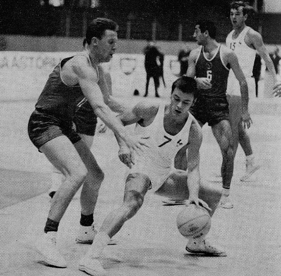 CT : Bien sur ! On parlait de 1973 alors forcément je suis obligé d’évoquer Cosic. Quel joueur ! Avant 1973, il y a Paulauskas. On en parle pas beaucoup de ce joueur, mais c’était était une « mécanique ». Pour la Grèce, Yorgos Kolokithas était très fort également. Il a été le meilleur marqueur de la compétition en 1967 en Finlande devant les meilleurs Russes. Je me souviens aussi de Barry Leibowitz, l’Israélien. C’était un meneur qui venait des Etats-Unis avec un passeport Israélien. On a beaucoup discuté ensemble. Korac était très bon aussi. Je pourrais aussi citer Francesc Buscato l’espagnol. Tous ces joueurs étaient proches du professionnalisme. Il y a également Dino Meneghin, le père. Que Belo Dino !