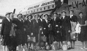 Accompagnées de Robert Lescaret, secrétaire général de la FFBB et d’Anne-Marie d’Almeida, directrice de l’équipe de France, les Bleues s’envolèrent non sans difficulté pour le Chili après un match d’exhibition à Bueno Aires face à la Suisse devant le président argentin Juan Peron. Leur avion sera en effet reporté à deux reprises dans la capitale argentine et quelques trous d’airs dans le ciel sud-américain causeront quelques frayeurs à l’équipe de France.